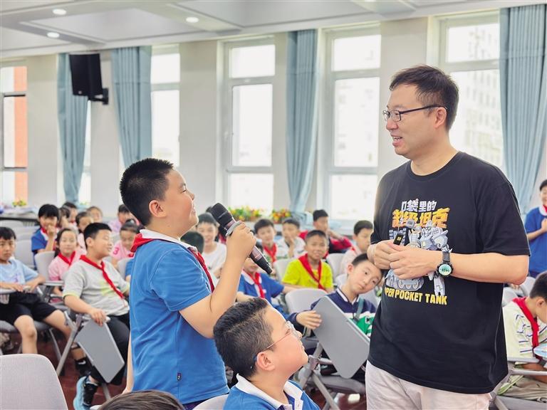 活動當天,“坦克叔叔”耿溧以生動活潑、幽默風趣的語言,向同學們分享了他的暢銷作品《口袋里的超級坦克》創作背后的故事。在互動環節,同學們積極踴躍地舉手提問,有的詢問關于坦克的相關知識,有的請教寫作過程中遇到的問題,“坦克叔叔”都耐心地一一解答。現場氣氛熱烈非凡,同學們對知識的渴望和對閱讀的熱情被徹底點燃。