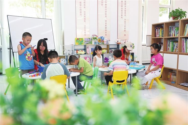 在蘭州市安寧區棗林西社區,志愿者與暑期成長營的同學互動。馮樂凱 王煜宇